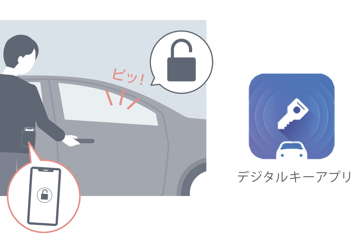 ※ご利用には、新車ご注文時にデジタルキー(メーカーオプション)のご購入が必要となります。 ※デジタルキーが利用できない状況に備えて、常にクルマのキーも携帯いただくことを推奨いたします。