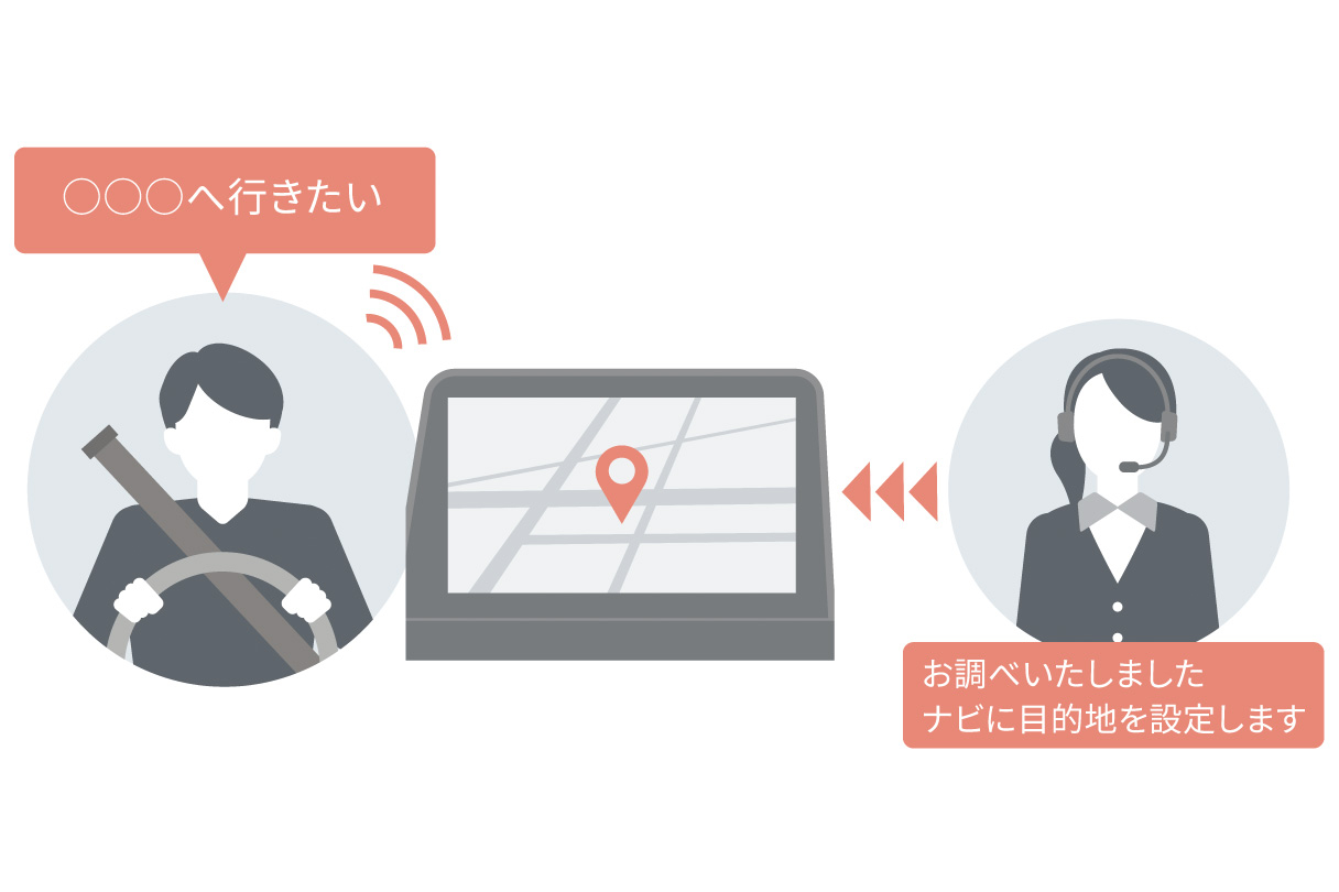 行きたい場所や知りたい情報を伝えるだけで、オペレーターがお客様に代わって検索し、ナビの目的地設定も行います。人ならではのきめ細かく柔軟な対応でご希望に沿ったサポート*2をいたします。