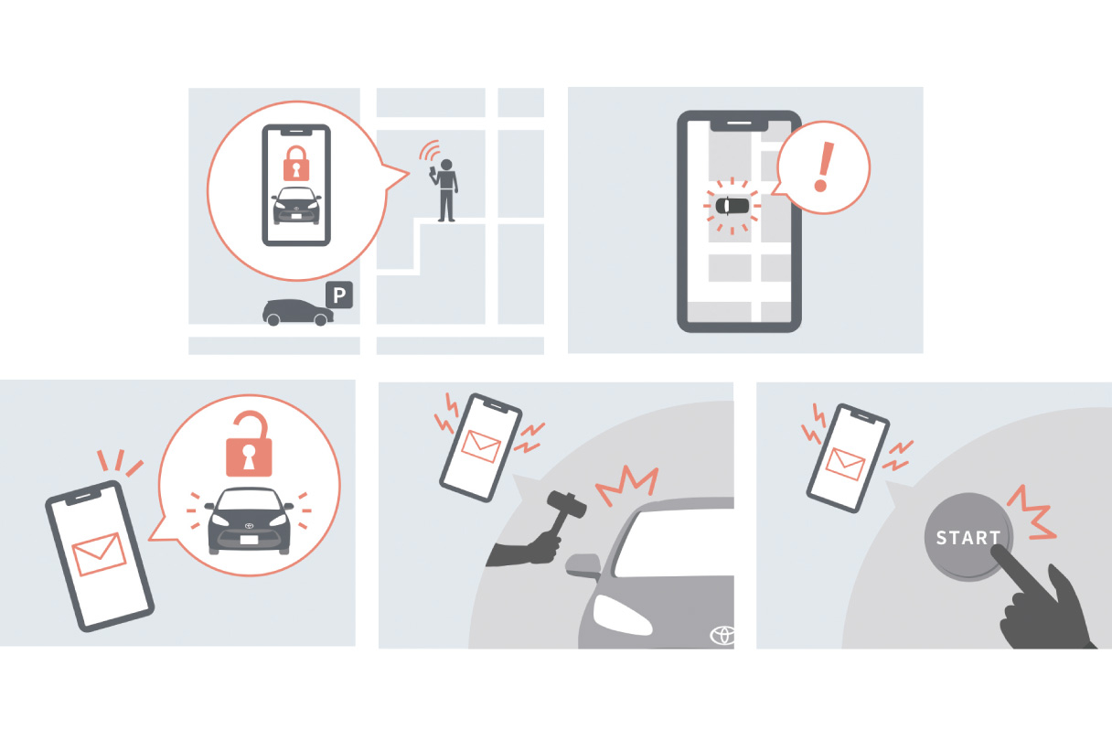 ドアのこじ開けなどによるオートアラーム作動を検知すると「My TOYOTA+」やメール*1にお知らせします。