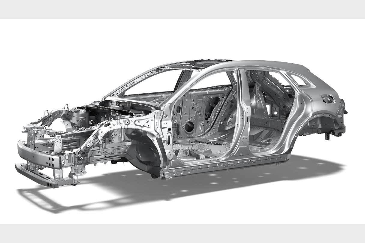 エモーショナルで創造的なデザイン、乗降性と着座位置のよさ、そしてクラウン スポーツの名にふさわしい気持ちよく楽しい走り。この3つを満たすためのプラットフォームを追求しました。大径タイヤによるリフトアップは、TNGAプラットフォームを改良することで実現。乗降性については、無理なく乗り越えられるサイドシルの高さと降車しやすい後席乗員のヒップポイントを探り当てることで、また走行性能に対しては、マルチリンクサスペンションを搭載できるリヤ骨格を開発することで達成。クラウン スポーツのデザイン性、快適性、走行性能を支えるプラットフォームです。