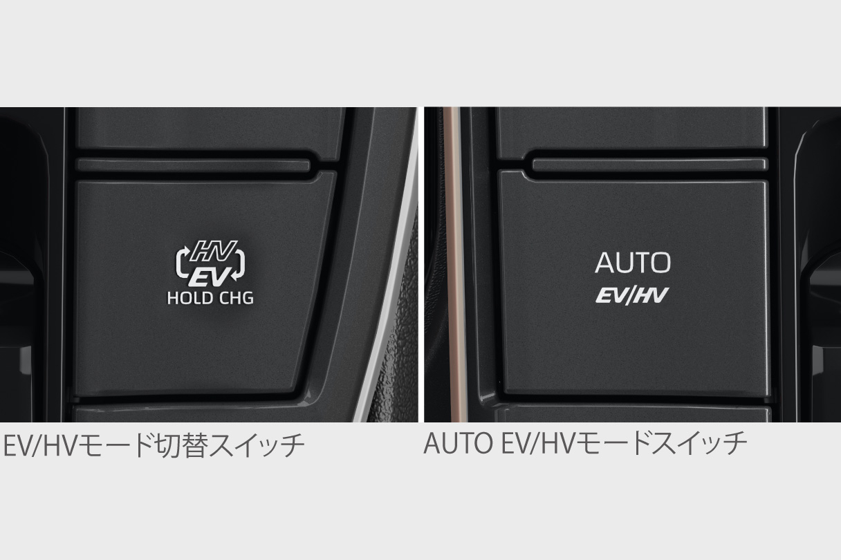 EV走行に必要な駆動用電池残量が低下した際、EV/HVモード切替スイッチを長押しすると、エンジンで発電した電気をバッテリーに充電します。