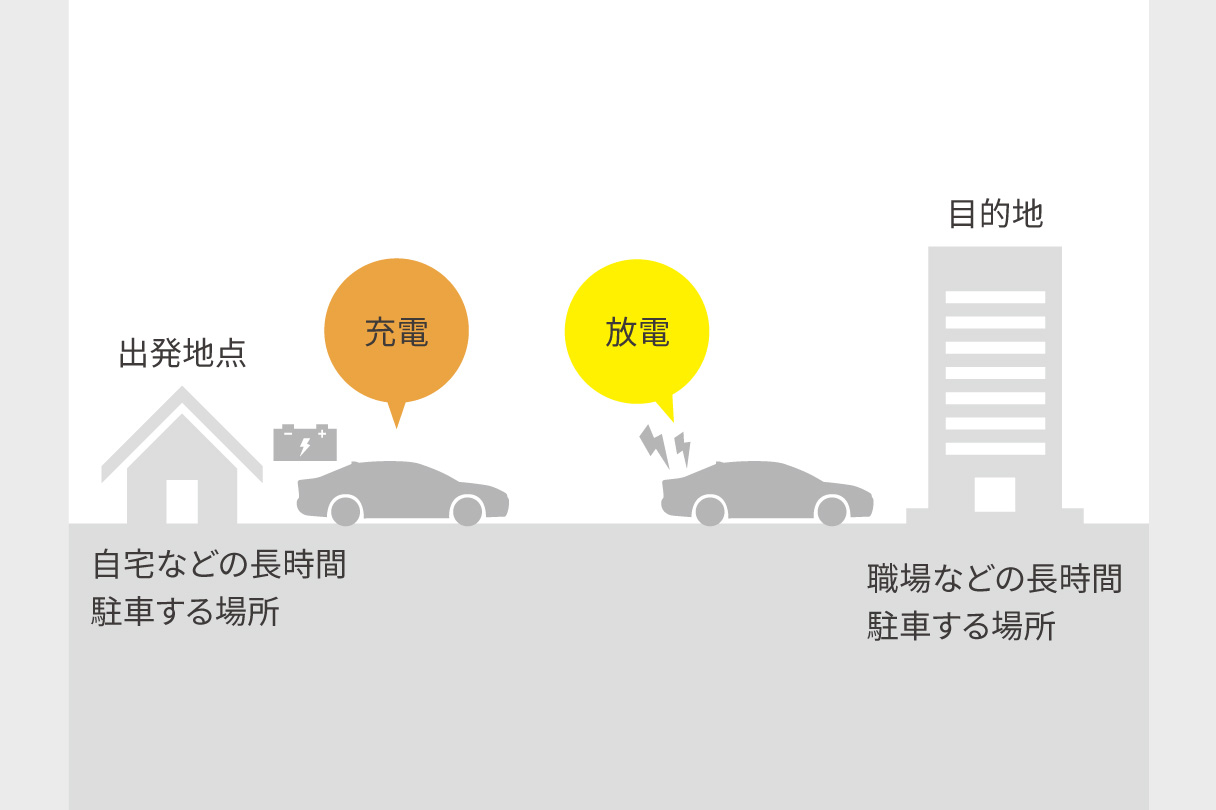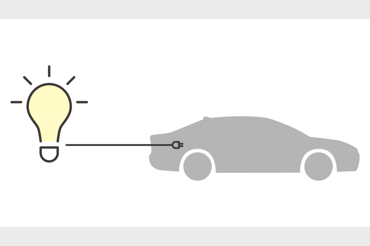 万が一の時にも、クルマを電源として活用できます。はじめはバッテリーのみで給電。バッテリー残量が所定値を下回るとエンジンがかかり給電を継続します。
