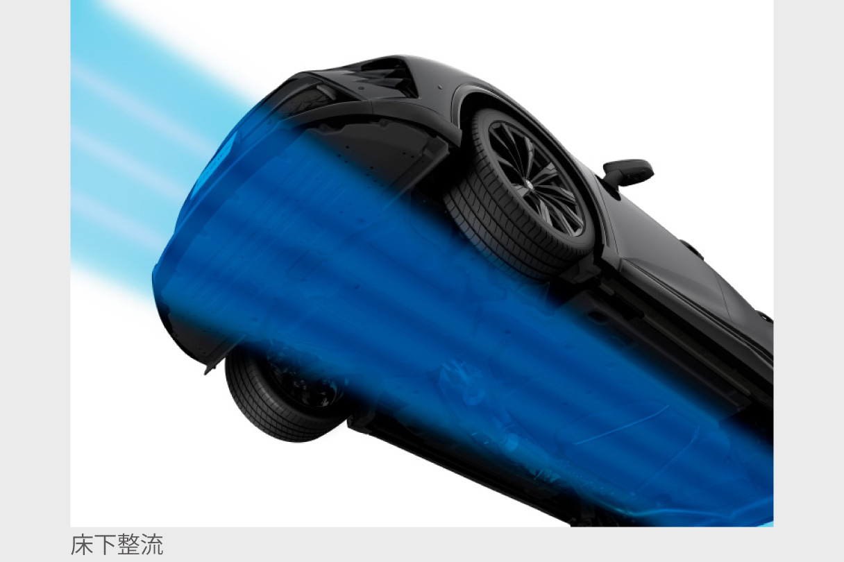 デザインと空力性能を高い次元で融合させたクラウンスポーツ。空力にも寄与するキャビンの造形や、床下流速を高めダウンフォースを発生させるエアロスタビライジングアンダーボディステップなど、接地性・直進安定性を向上させる数々の床下アイテムを設定しています。