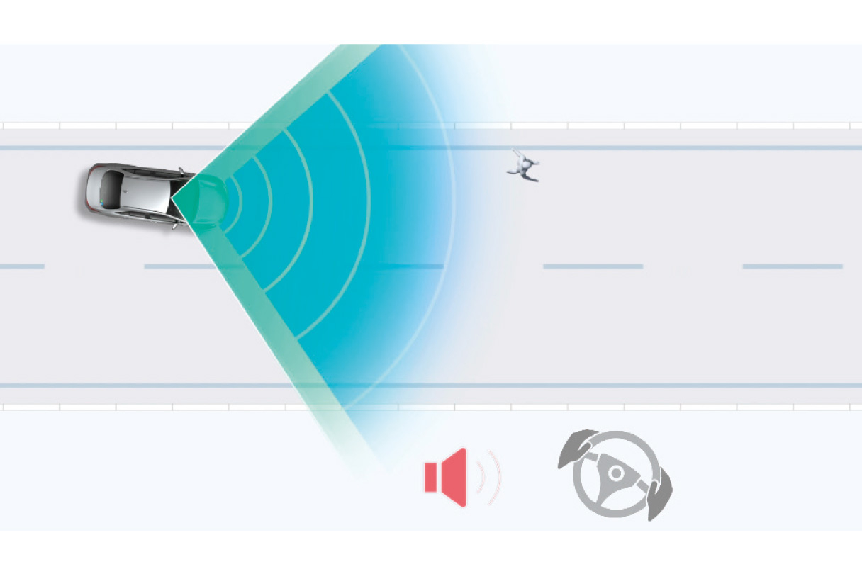 歩行者、自転車運転者、自動二輪車、車両と衝突する可能性が高く、自車線内に回避するための十分なスペースがある場合、ドライバーによる操舵がなくてもシステムが弱いブレーキをかけながら操舵を行い、車線内での衝突回避を支援します。
