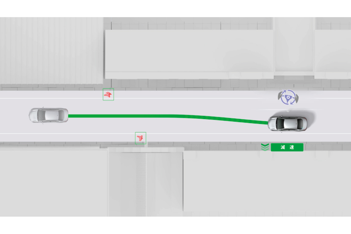 「歩行者の横断」「飛び出してくるかもしれない」など、運転の状況に応じたリスクの先読みを行うことで、危険に近づきすぎないよう運転操作をサポートし、ドライバーの安心につなげます。