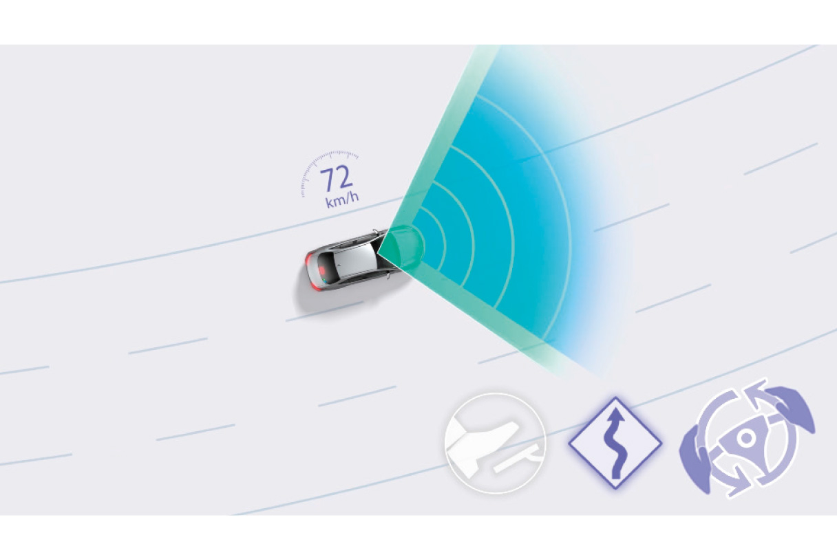 リスクを先読みし、危険に近づきすぎないようにステアリング・ブレーキ操作をサポートします。