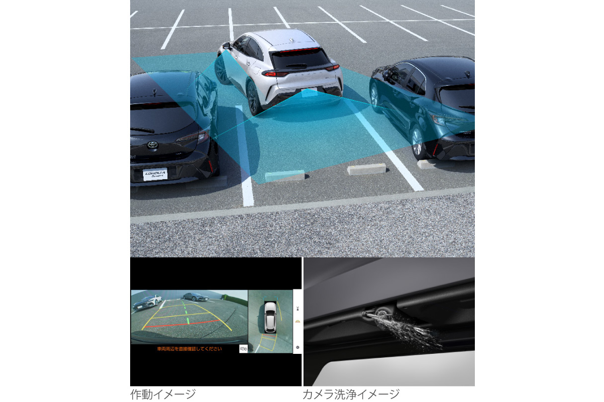 ■字光式ナンバープレートは装着できません。 ■ユーザー操作によりウォッシャが作動し汚れを落とします。 ■写真は作動イメージです。 ■カメラが映し出す範囲は限られており、実際より遠く見える場合があります。映像を過信せず、必ず車両周辺の安全を直接確認しながら運転してください。 ■一定速度を超えるとモニターにカメラ画像が表示されなくなります。詳しくは取扱説明書をご覧ください。