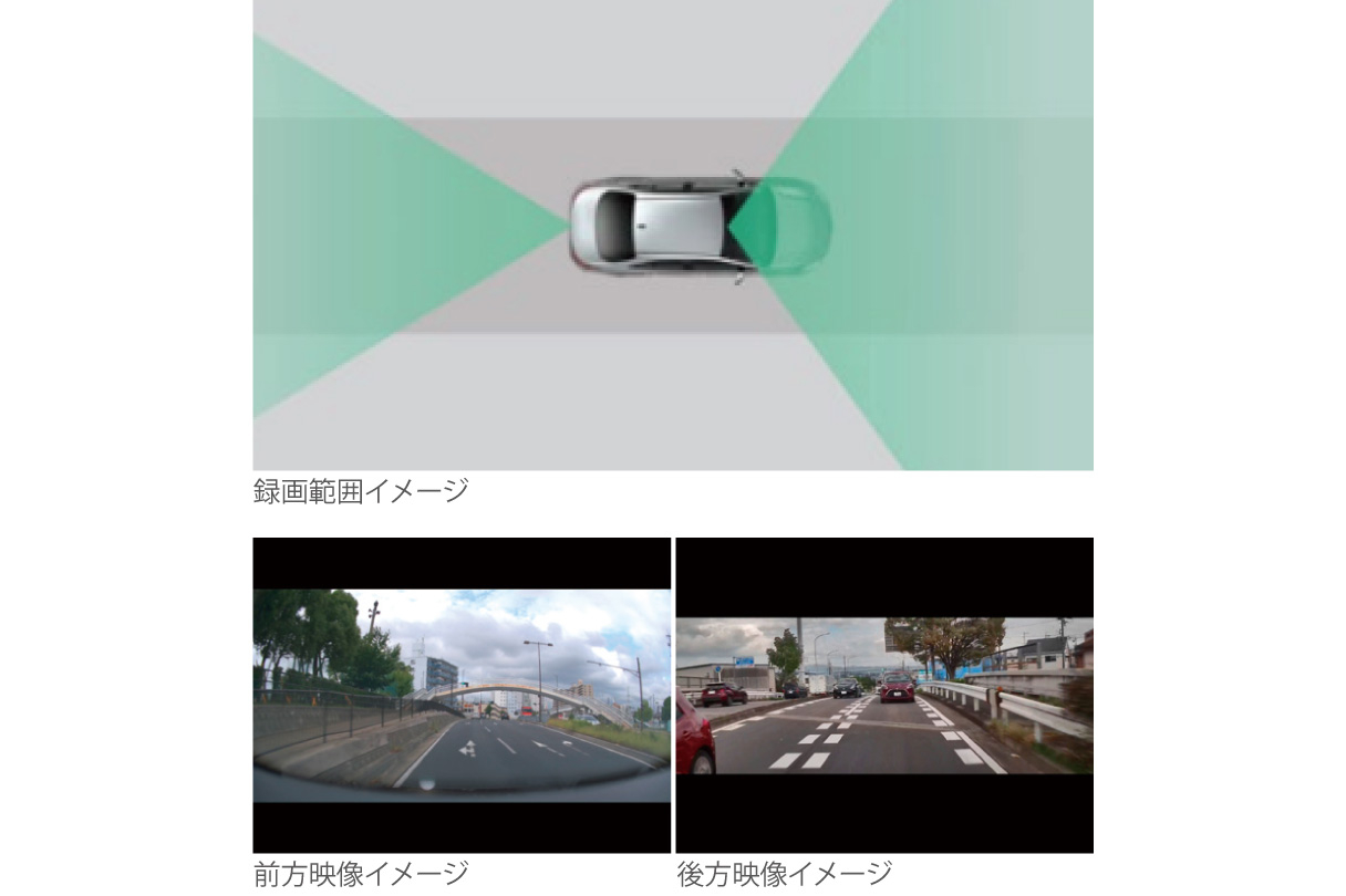 *1. スマートフォンへの転送・再生にはスマートフォンアプリ「My Drive Recorder Viewer」のインストールが必要です。 ■ドライブレコーダー(前後方)は事故の検証に役立つことを目的の一つとした製品ですが、証拠としての効力を保証するものではありません。 ■映像が録画されなかった場合や録画されたファイルが破損していた場合による損害、故障や使用によって生じた損害については、弊社は一切責任を負いません。 ■録画した映像は、その使用目的や使用方法によっては、被写体のプライバシーなどの権利を侵害する場合がありますのでご注意ください。また、イタズラなどの目的では使用しないでください。これらの場合については弊社は一切責任を負いません。 ■詳細については取扱説明書をご覧ください。 ■機能 画角(水平):前方108°/後方62° 録画画素数:前方200万画素(上下に黒帯が記録されるため、実映像は約180万画素となります。)/後方200万画素(上下に黒帯が記録されるため、実映像は約130万画素となります。) ■画像のカメラ範囲はイメージです。 ■Wi-Fi®️は、Wi-Fi Allianceの登録商標です。 ■イラストは作動イメージです。