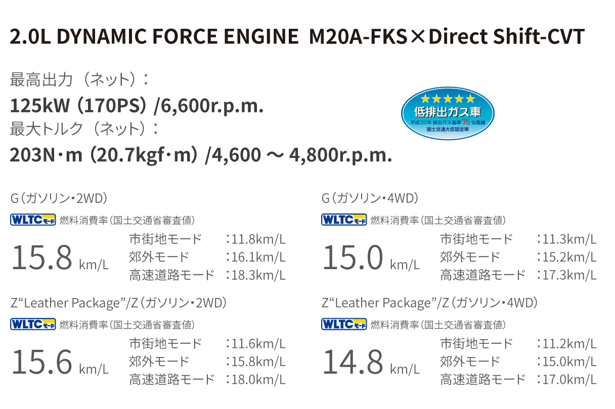 ■燃料消費率は定められた試験条件のもとでの値です。お客様の使用環境(気象、渋滞等)や運転方法(急発進、エアコン使用等)に応じて燃料消費率は異なります。