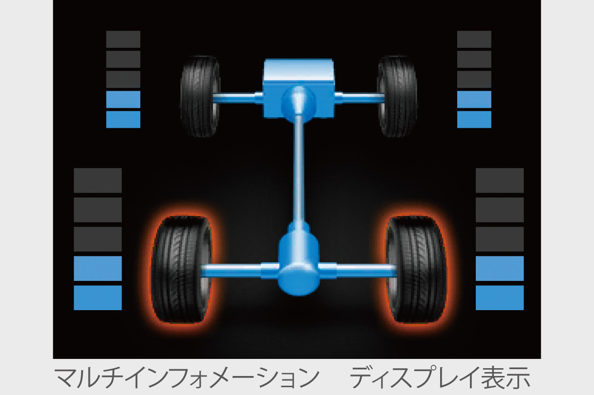 前輪駆動状態と4輪駆動状態を自動的に電子制御します。通常の走行時には前輪駆動状態で燃費効率の良い走りを実現。発進時や滑りやすい路面での走行時には、車両の状態に合わせて最適なトルクを後輪に配分します。旋回時には、ステアリング操舵量からドライバーが思い描くターゲットラインを算出し、車両挙動に応じてきめ細かく後輪にトルクを配分。これらの制御により雪路だけでなくドライ路面での安定した走行を実現しています。また走行中における4WD作動状態の変化は、マルチインフォメーションディスプレイで確認できます。