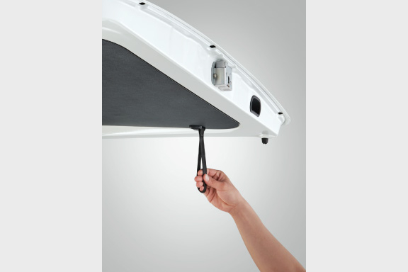 バックドアに手を伸ばさなくても、ストラップを引っ張ってラクにバックドアを閉めることができます。