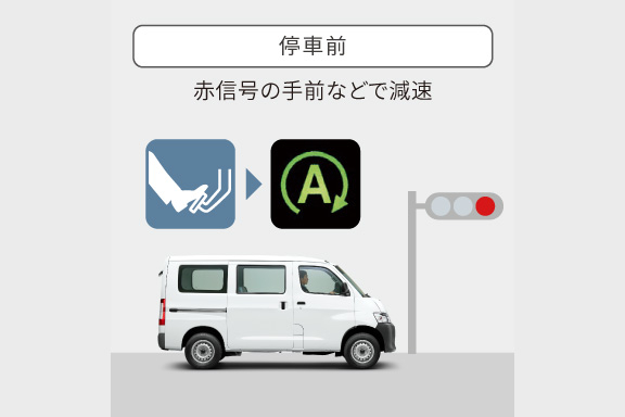 エンジンのアイドリングを自動的にストップさせ、燃費の向上に貢献。