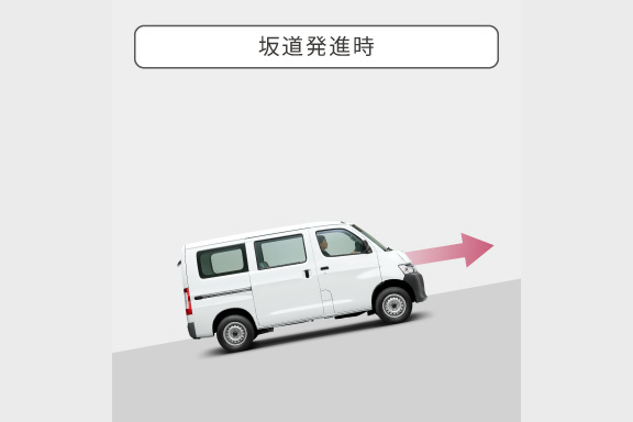 坂道でアイドリングストップ状態からの再始動では、坂道発進補助機能が車両の後退を抑制。坂道発進がスムーズに行えます。