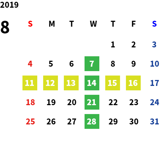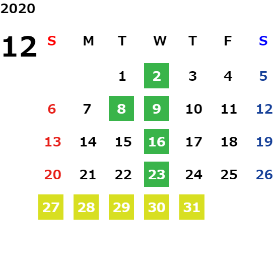 毎週水曜・第2火曜