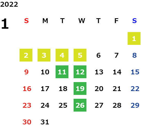 営業日カレンダー